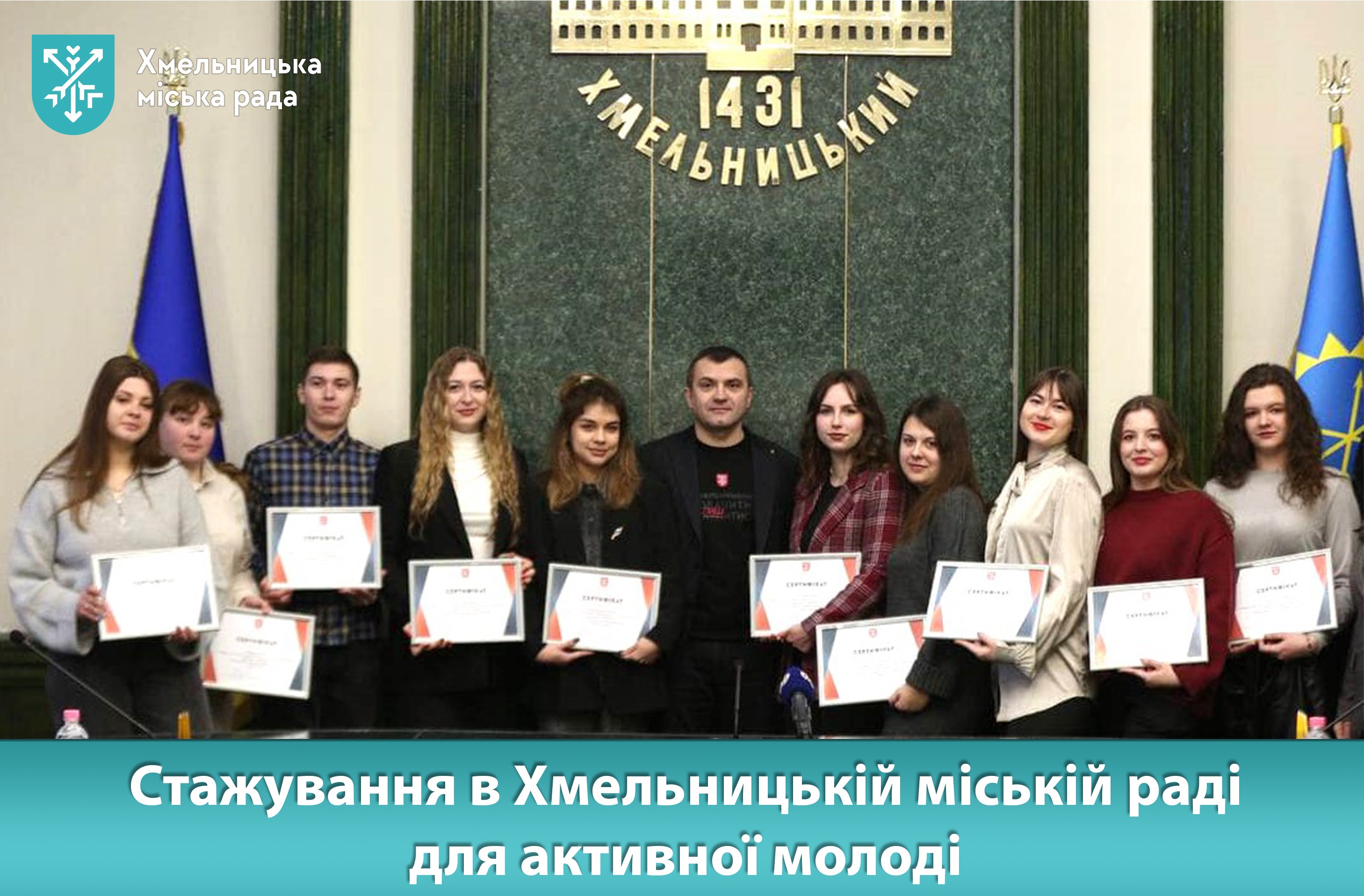 Хмельницька міська рада оголошує прийняття заявок на чергове стажування молоді у виконавчих органах ради. На стажування запрошуємо студентів 5-6 курсів, які отримали дипломи молодшого бакалавра чи бакалавра, та випускників (що завершили навчання протягом останніх 2-х років) – активних, відповідальних та комунікабельних людей, які цікавляться місцевим самоврядуванням та розвитком міста. Найактивніша молодь, яка має завершену вищу освіту та успішно пройшла стажування, матиме можливість працевлаштування у виконавчих органах Хмельницької міської ради та комунальних підприємствах, установах та закладах Хмельницької міської територіальної громади.
